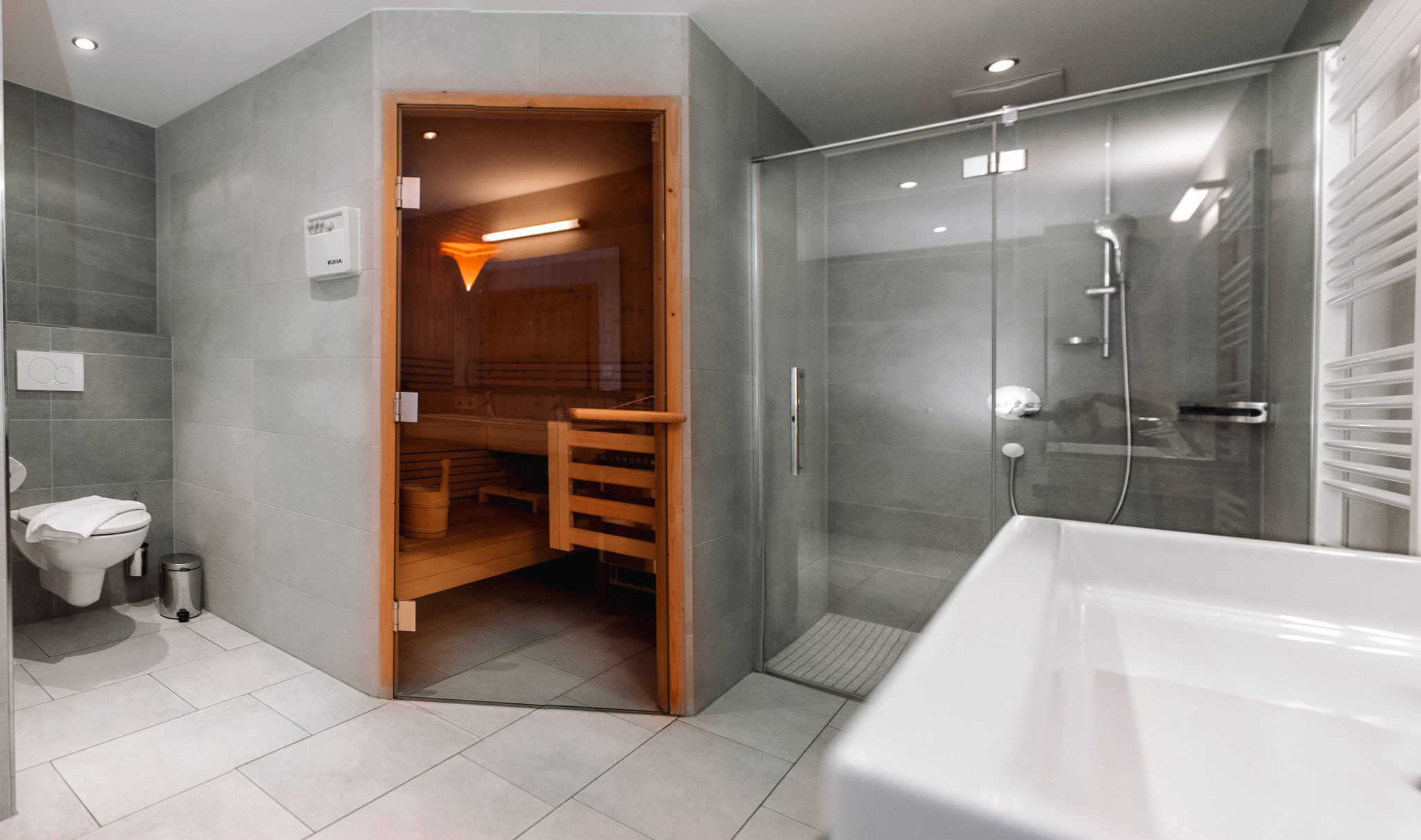 Guests at Kaprun Glacier Estate can relax in the shared sauna, perfect after an active day in the mountains, all year round; swimwear is required.