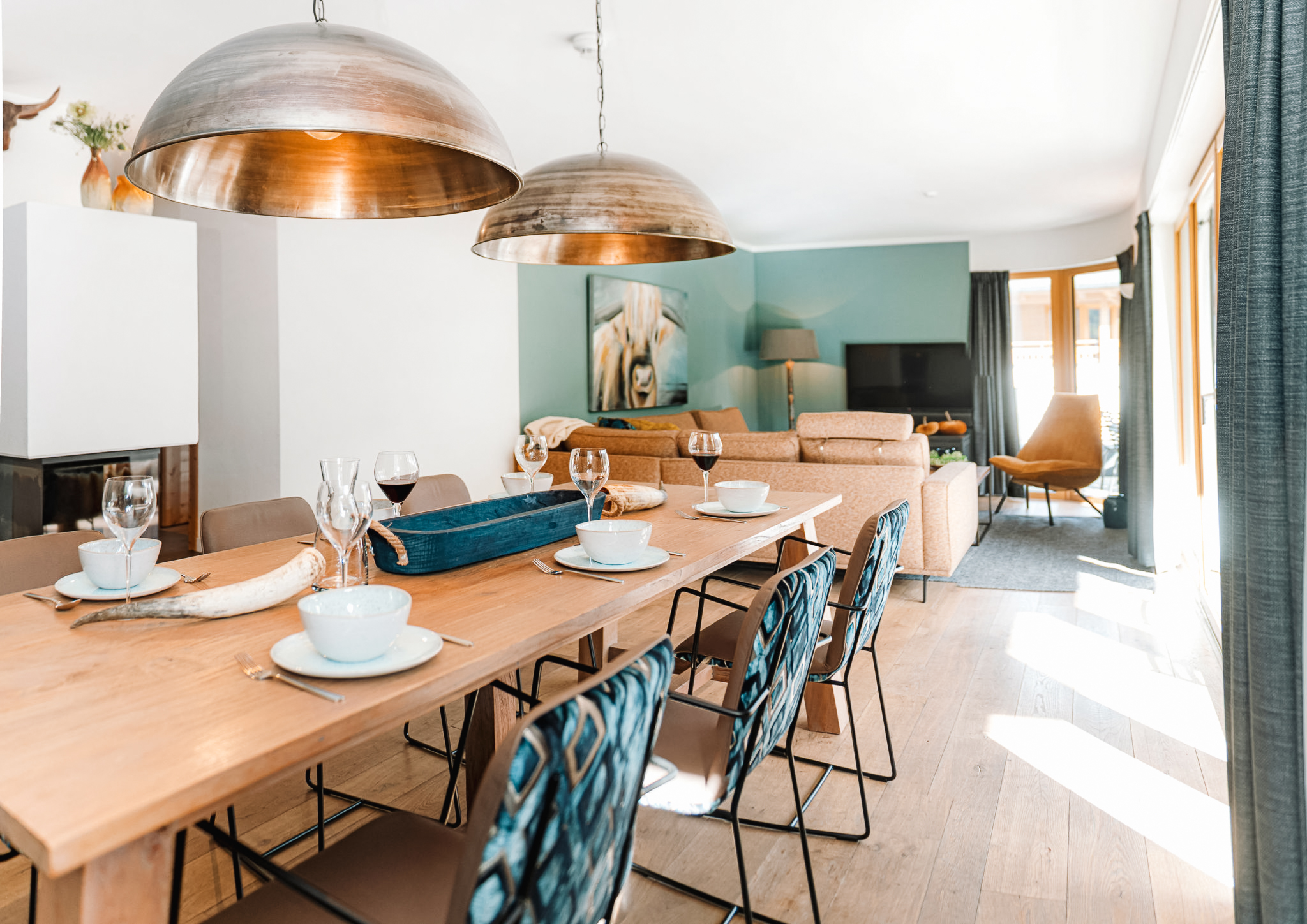 Each apartment combines modern furnishings with exceptional comfort. Tieleman design kitchens are fully equipped, bedrooms are designed for restful sleep, and most units feature private terraces or balconies with panoramic alpine views.