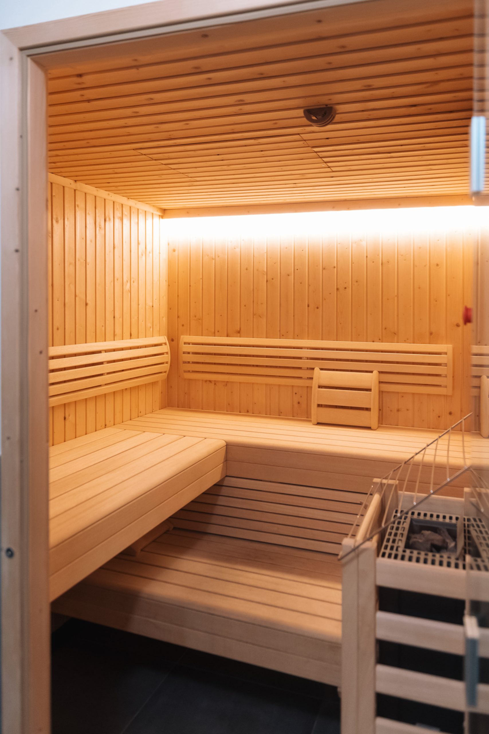 Relax in the shared sauna; swimwear is required.