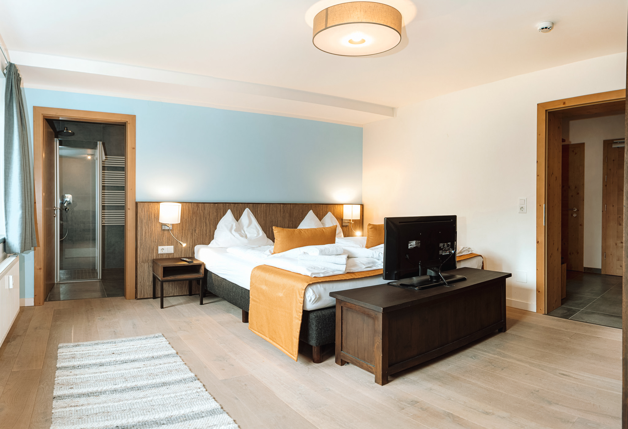 The village center, shops, restaurants, cafés, a supermarket, and a gas station are all within 700 meters, while ski and bike rentals are available right next door at Blachfelder.